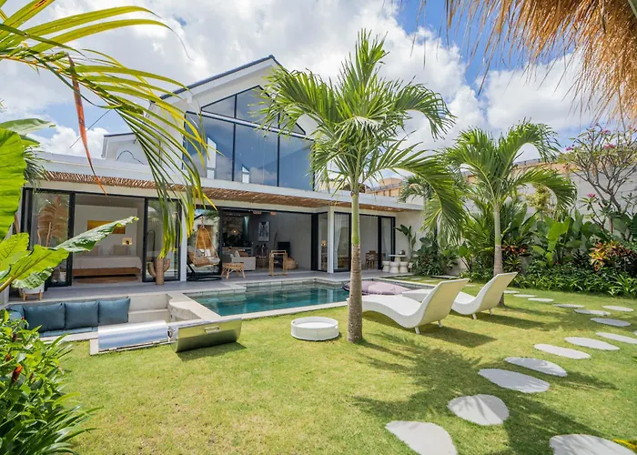Die 159 m² große New! Tropical Palms Villa - 4Br Villa In Kerobokan liegt in einer Entfernung von 3 km von der Jalan Petitenget Walking Street und bietet WLAN für Geschäftsreisende und Urlauber. Das Apartment liegt nur 10 Minuten Fahrweg vom Berawa-Strand entfernt.